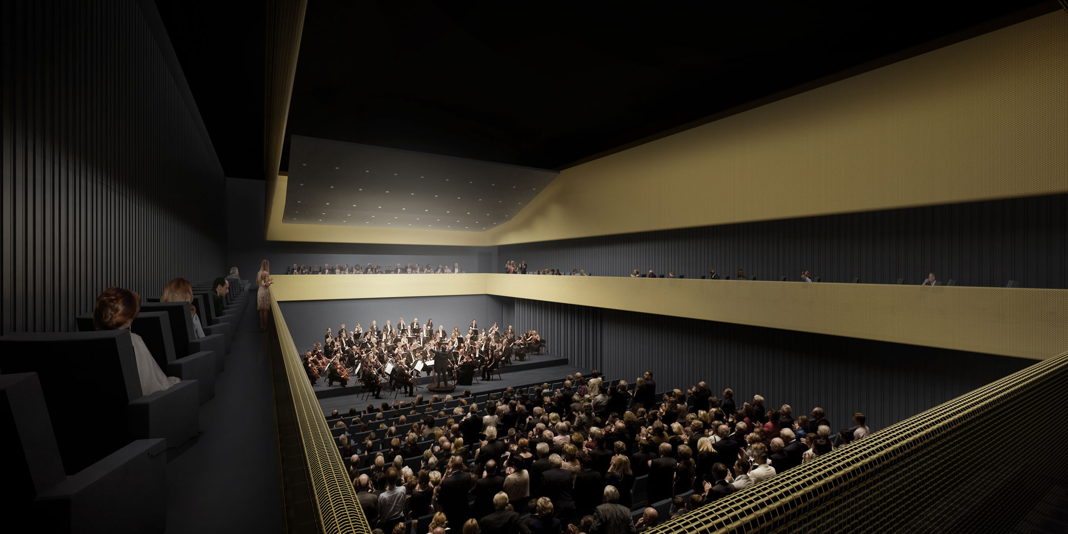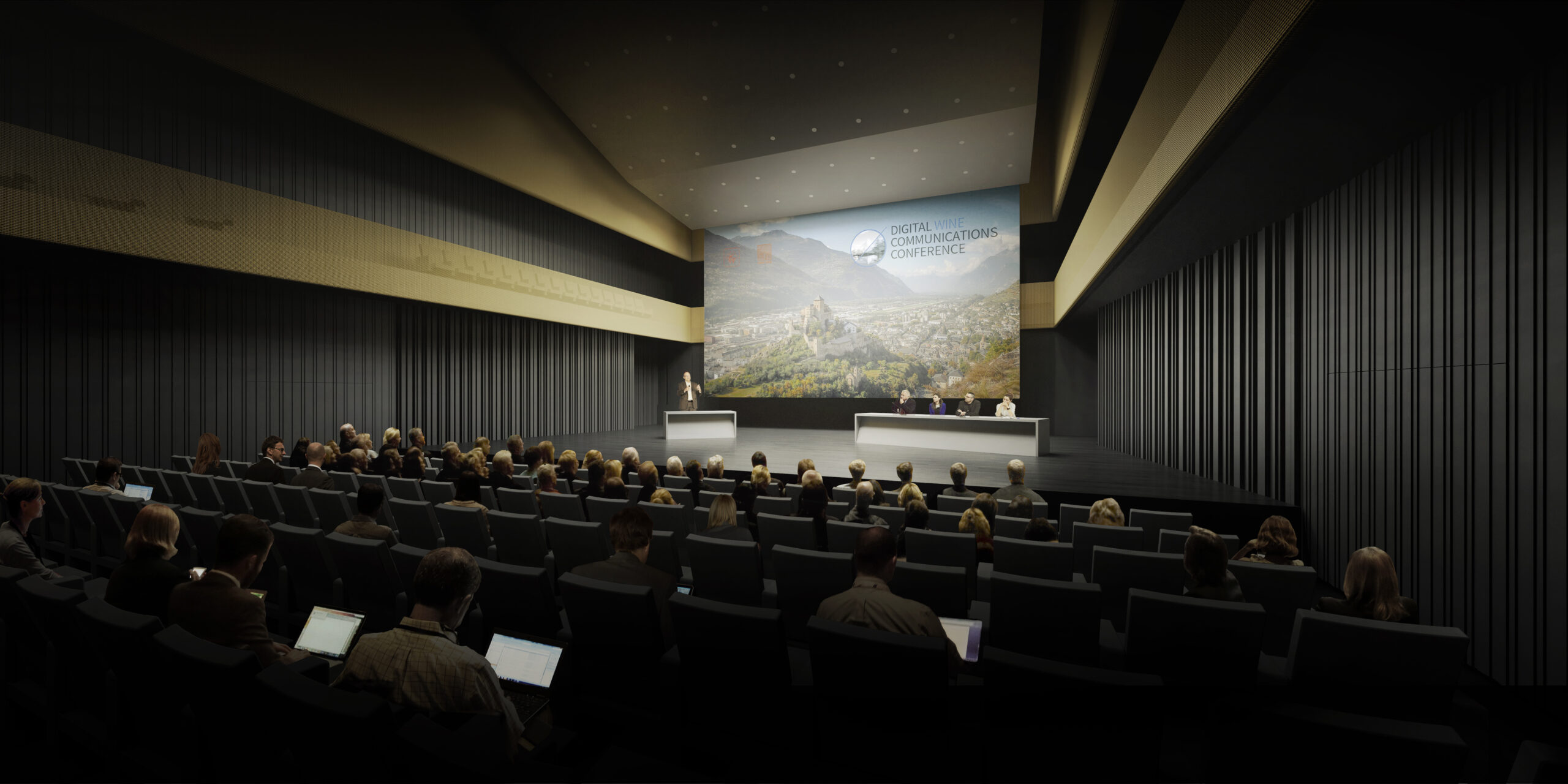 Niché au cœur de Sion, Noda BCVS se distingue par une matérialisation architecturale exceptionnelle : un écrin noir enveloppé d’un tissu métallique doré qui allie performance acoustique et mise en scène lumineuse. Sa technologie avancée répond aux exigences des musiciens, congressistes et d’un public averti, garantissant une expérience inégalée.